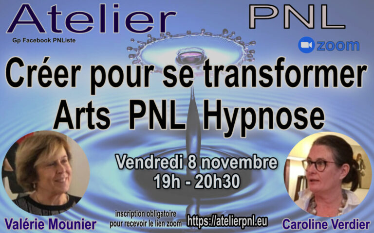Durant cet Atelier PNL, Valérie MOUNIER et Caroline VERDIER, vous feront découvrir en avant-première la Méthode C.A.V.A.L., une nouvelle thérapie inédite qui met en symbiose la PNL, les Arts – dessin, mime, musique, écriture – et l’hypnose ericksonienne.