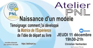 En 2020, j’ai organisé les Ateliers PNL en ligne. Ces ateliers prolongeaient ce que le groupe PNListe proposait en organisant des rencontres autour de la PNL et en invitant des experts dans leur domaine pour nourrir votre expérience et votre pratique.